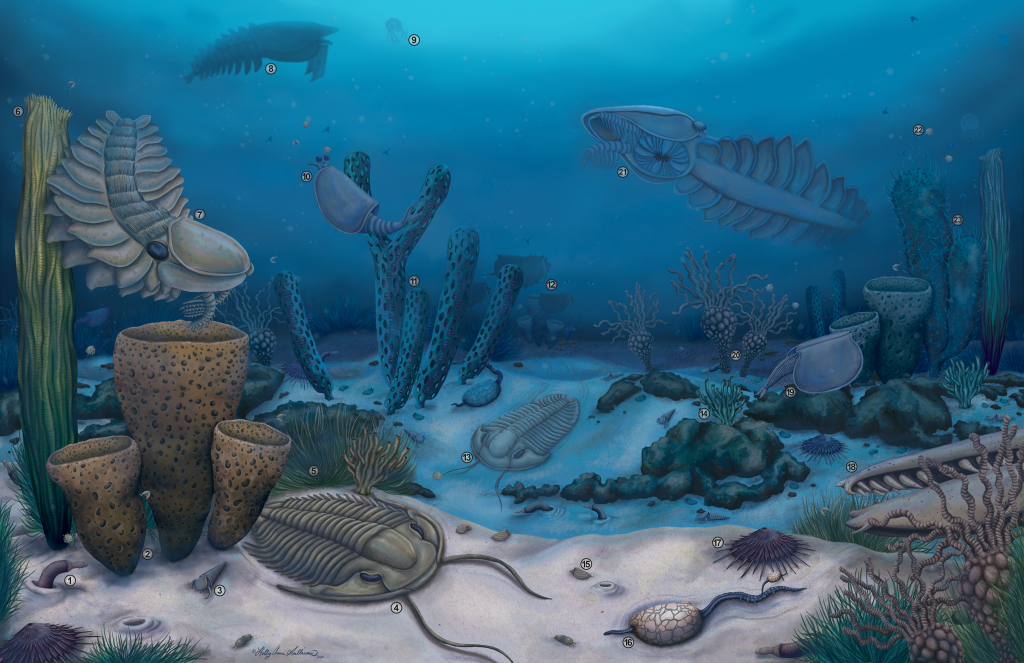 Vivíamos en un mar cálido y relativamente tranquilo en el que se inició un proceso de «rifting» o apertura oceánica (evento extensivo) que inició lo que será más adelante, el oceáno Rheico. En estos mares no había ni peces ni mamíferos marinos sino esponjas, medusas, moluscos y artrópodos (primeros animales con exoesqueletos). Uno de los más populares en su género son los Trilobites, animales extintos hoy día. Este período nos cuenta una explosión de vida inédita en el planeta. En la Sierra, tenemos pocos registros fósiles de este momento (no tantos como cabría esperar) debido a que las rocas han sufrido varias fases de deformación y metamorfismo que han borrado parte de los restos biológicos que debieron quedar de esta época tan fascinante. Sin embargo, encontramos Trilobites en algunas localidades como en Cañaveral de León.