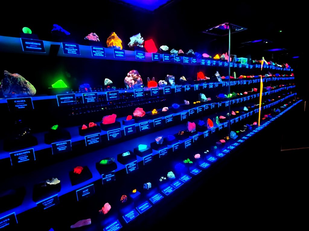 • Cuatro salas temáticas: Mineralogía, paleontología, geología y la Sala Negra, la mayor de Europa para observar minerales fluorescentes en un entorno oscuro.